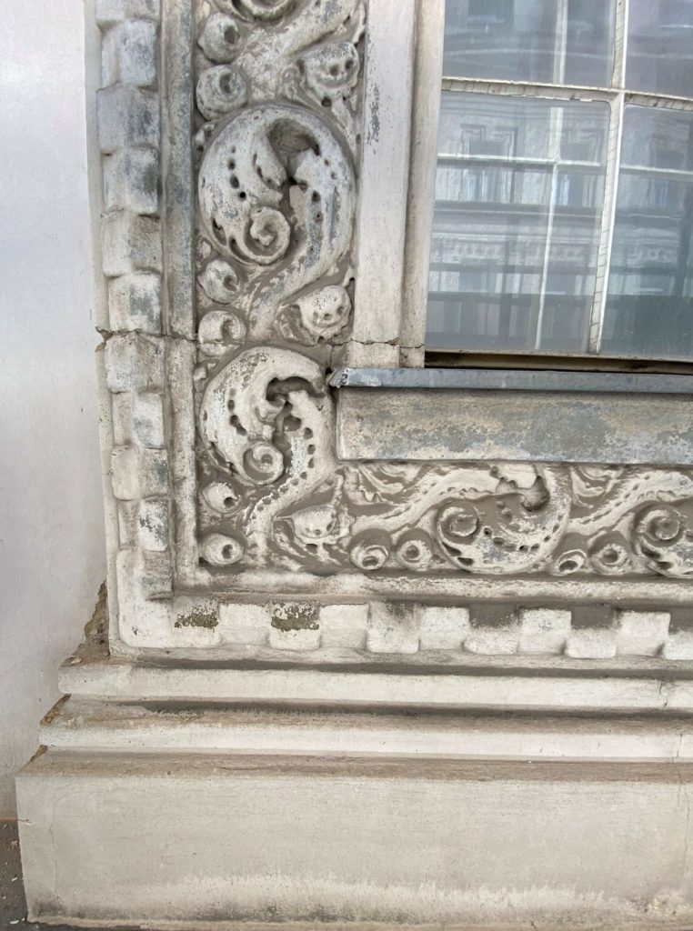 The excitement continues: the cleaning of the historic facade is in full swing. Every small corner, every little spot, and every curve of the facade needs to be cleaned and potentially restored – what a challenge!